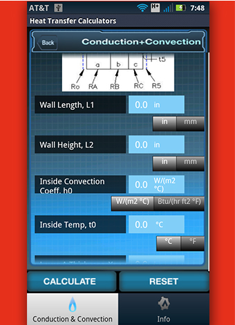 Heat Transfer Calculator offers calculators related to heat transfer calculations. The calculators include a conduction and convection calculator which calculates the conduction and convection phenomenon and outputs the temperature or heat transfer rate. It also allows unit conversion of heat transfer-related units from Metric to English units.